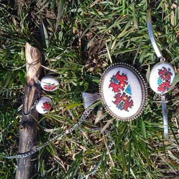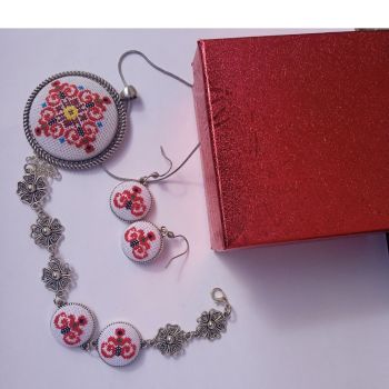 Комплект обеци, медальон и гривна бродирани с красиви мотиви