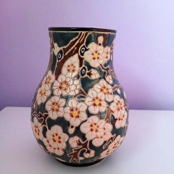 Ярка и колоритна, ръчно изработена и рисувана керамична ваза, Приказка