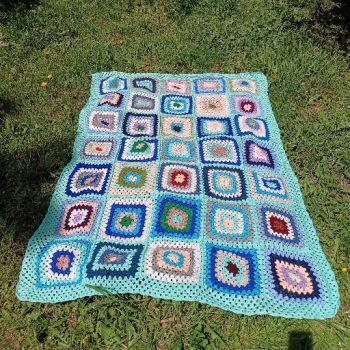 Многоцветно, ръчно плетено одеяло на една кука, Кралско синьо настроение