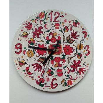 Ръчно рисуван стенен часовник с мотиви от българската шевица "Плодородие"
