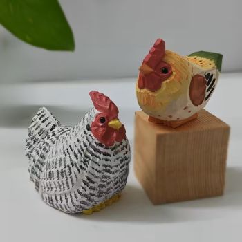 Съседки, комплект 2 ръчно изработени Великденски кокошки - дървопластика