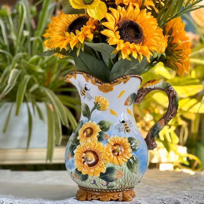 Ръчно изработена и рисувана керамична кана, Слънчогледи