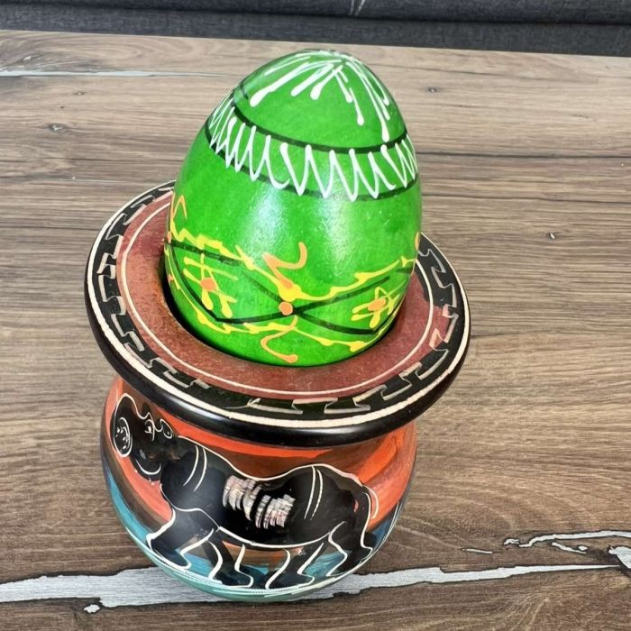 Яйцето е с размера на естестествено кокоше яйце. Ръчно изработено по ювелирен начин от дърво.
