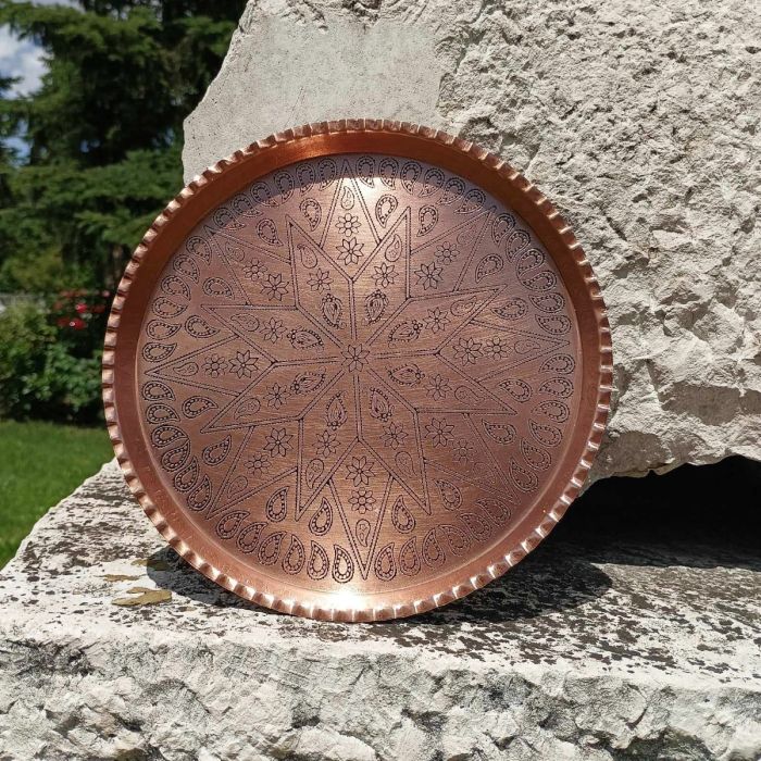 Подносът е уникален подарък за любителите на традиционните интериорни аксесоари и за юбилей "Медна сватба".