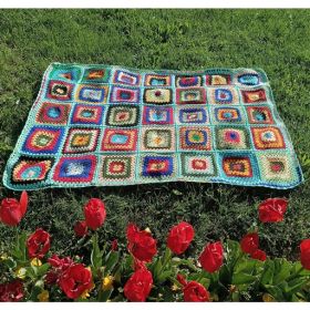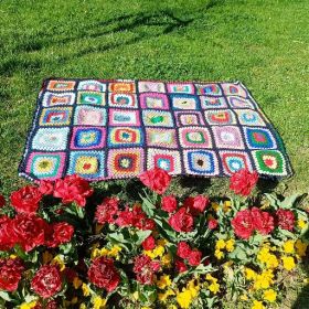 У дома, многоцветно одеяло, ръчно плетено на една кука