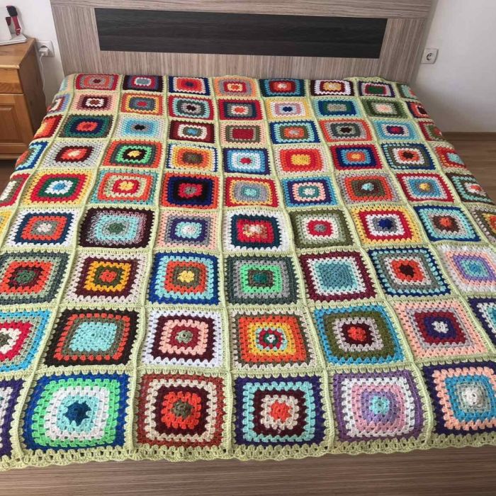 Ръчно плетено одеяло на една кука, бабини квадрати "Пролетно настроение"
