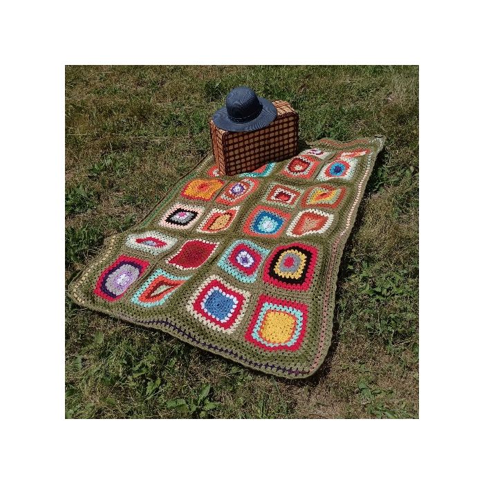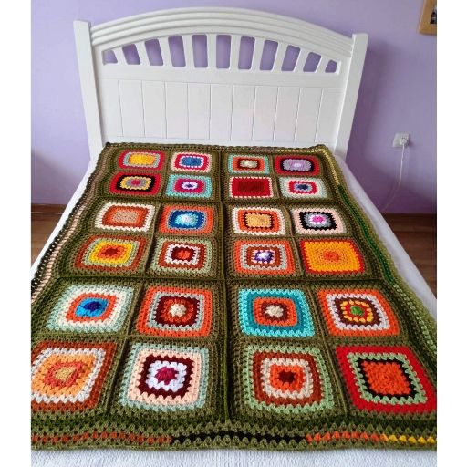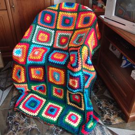 Ръчно плетено одеяло, бабини квадрати, с над 35 цвята. Преждата е 100% акрил. Пере се на пералня, при режим В, на 40 %.