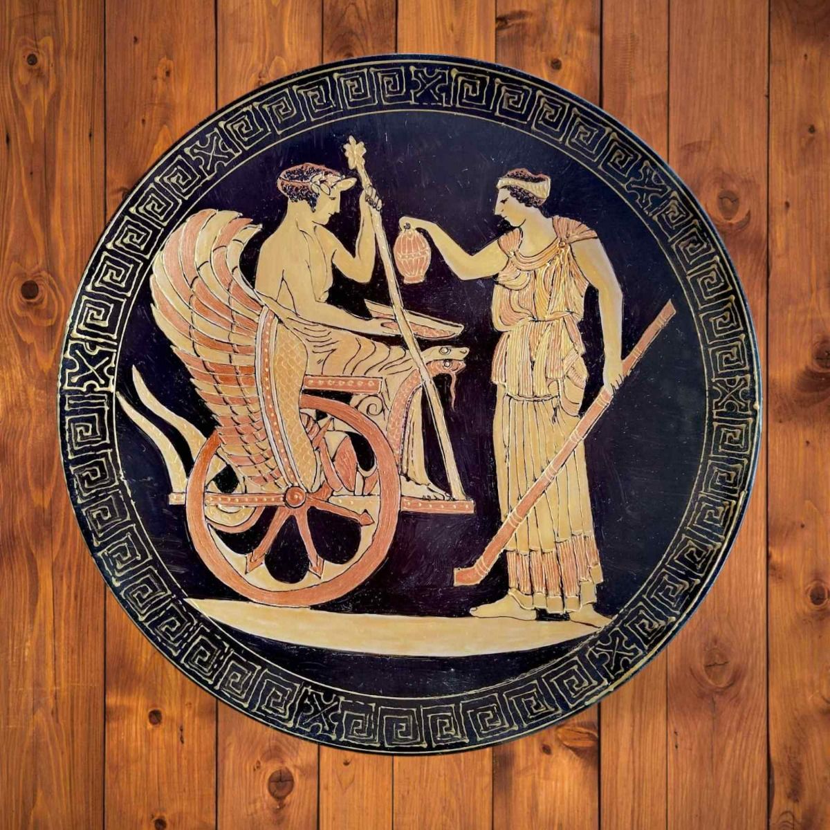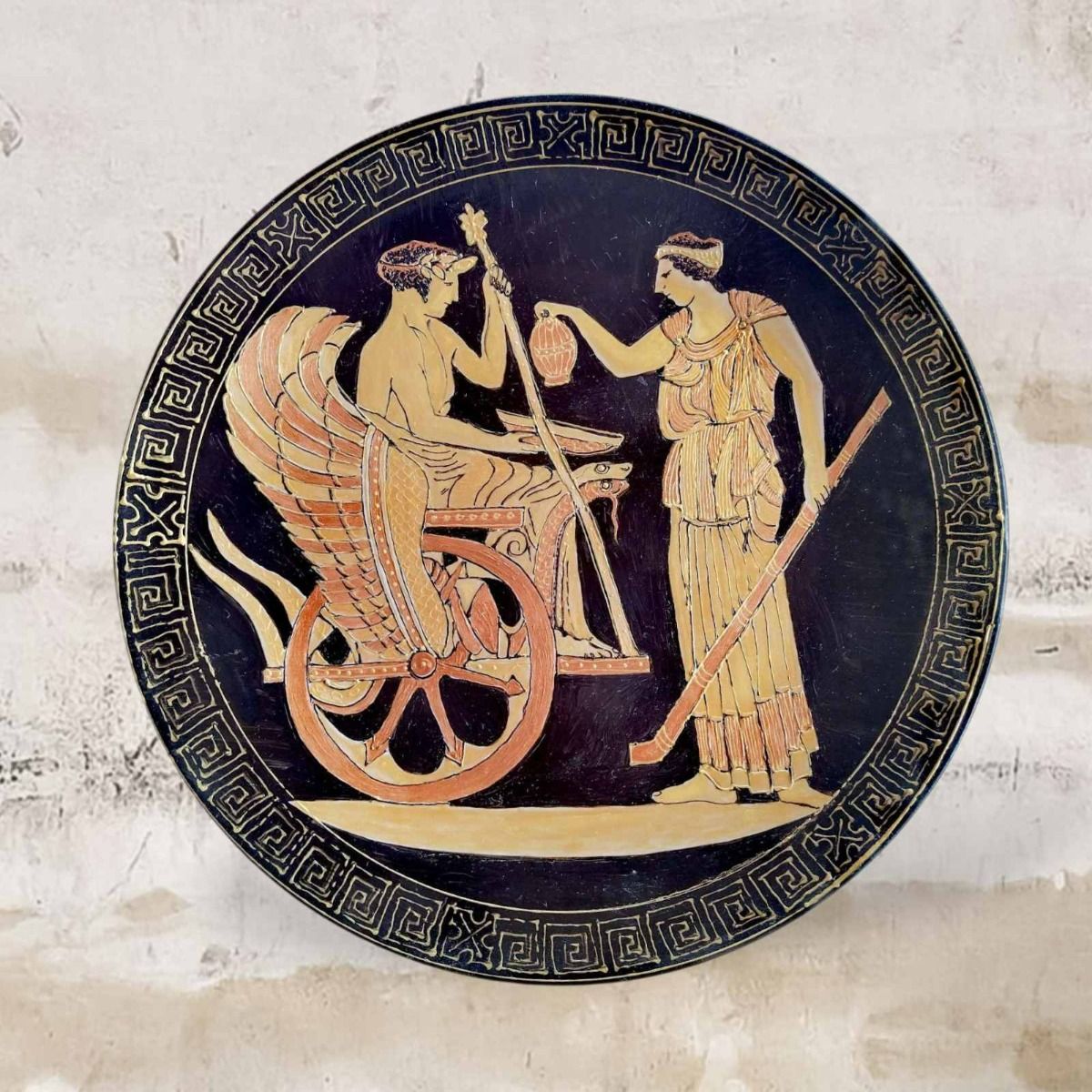Ръчно рисувана керамична чиния "Божествена инициация на античен владетел"