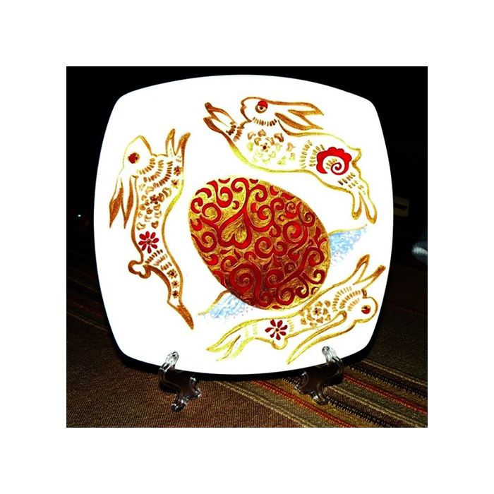 Ръчно рисуваната керамична чиния "Великден" е една идея за оригинален подарък за Великден. В чинията присъствува великденския заек с напомняне за триединството, а в центъра на чинията е поставено червеното великденско яйце, символа на Възкресението.