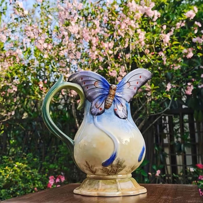 Ръчно рисувана керамична кана Пеперуда