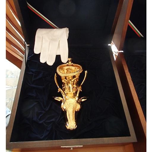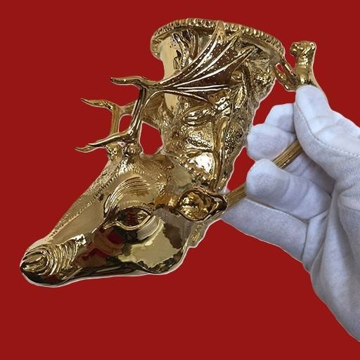 Позлатена художествена реплика на ритон с глава на елен от Панагюрското златно съкровище