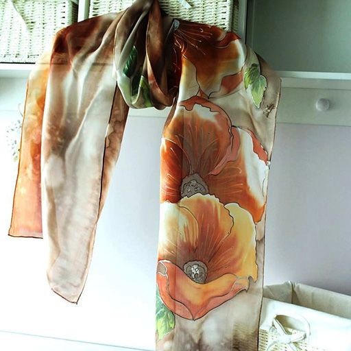 Ръчно рисуван шал от 100% естествена коприна, Есенни цветя