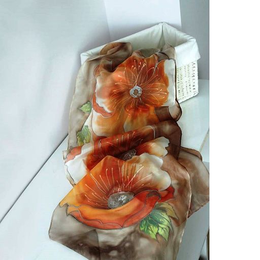 Ръчно рисуван шал от 100% етествена коприна, Есенни цветя