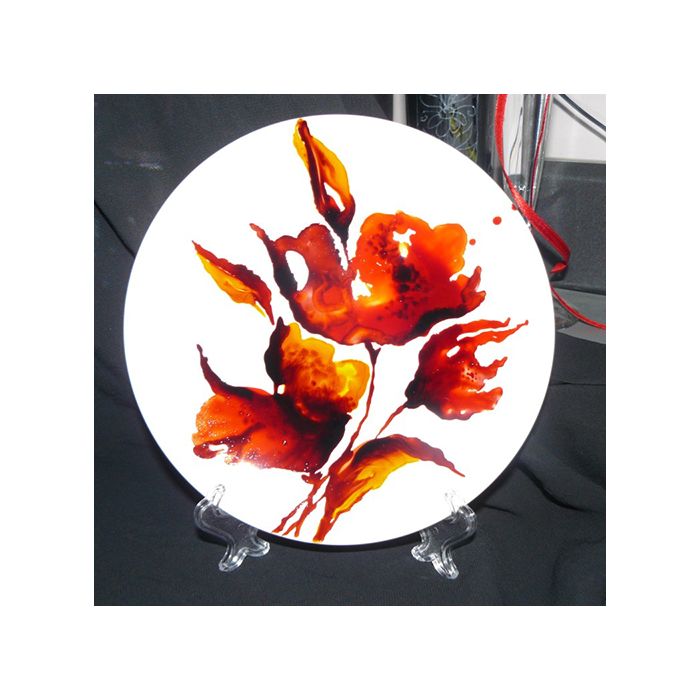 Порцелан рисуван със студени керамични глазури. Диаметър на чинията - 18 см. Чинията е уникат и се изработва по поръчка. Срок на изпълнение - 3 дни