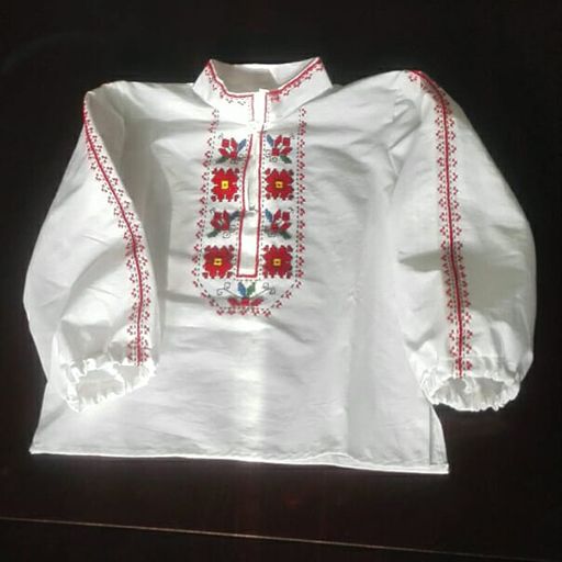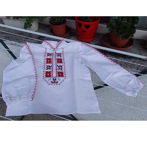 Бродирана памучна риза за момче с национална шевица, мотиви от Ловешката шевица