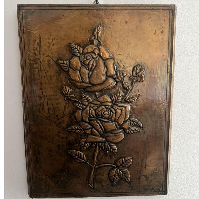 Ръчно кованата картина от мед е авторска творба с автентичен подпис на стария майстор. Картината е ръчно изкована с ювелирна изработка на роза символ на любовта и България. Цветето, символ на любовта е изящно, елегантно, стройно и пленително! Една вечна, неувяхваща българска роза.