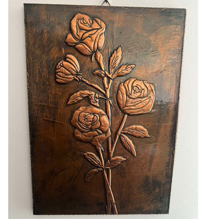 Ръчно кованата картина от мед е авторска творба с автентичен подпис на стария майстор. Картината е ръчно изкована с ювелирна изработка на роза символ на любовта и България. Цветето, символ на любовта е изящно, елегантно, стройно и пленително! Една вечен, неувяхващ букет от българска роза.