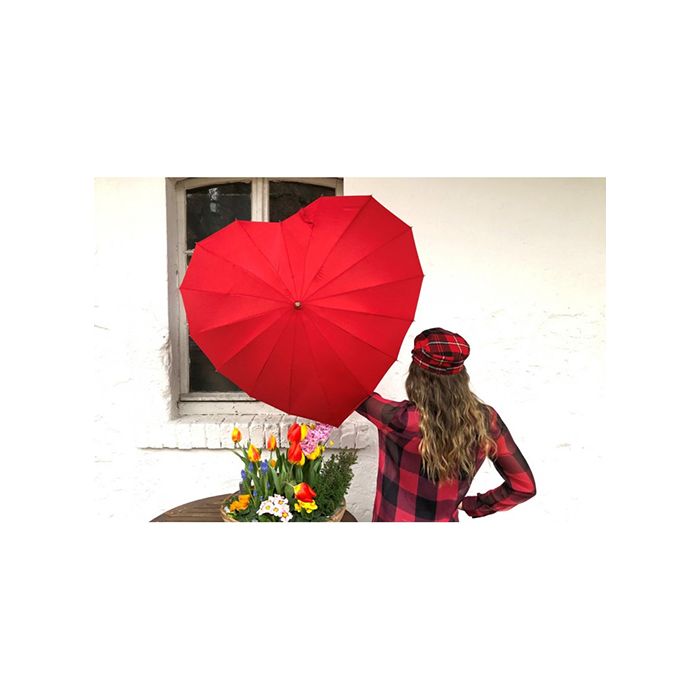 Казват, че няма нищо по-хубаво от лошото време.....Този ярък червен чадър, във формата на сърце, те кара да се усмихваш, да пееш по дъжда, да танцуваш и ....да целунеш любимия си човек!