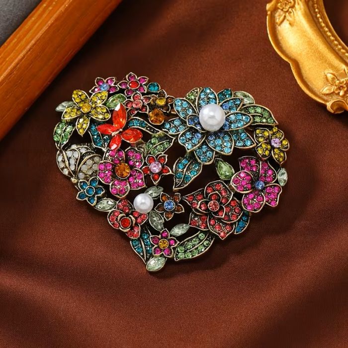 Сърце, изпълнено с красиви емоции, Брошка с камъни, различни цветове