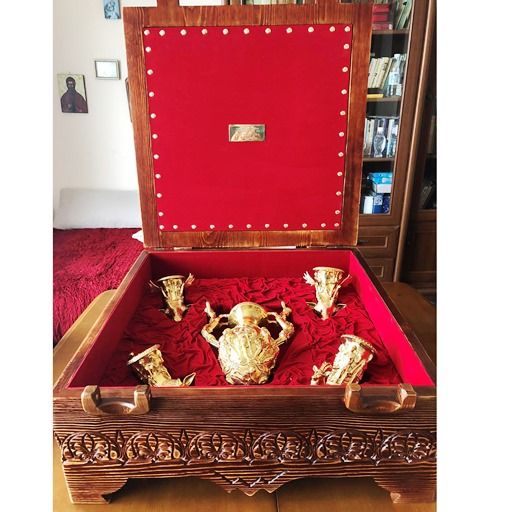 Тази кутия най-често се поръчва за комплект чаши, изработени от сребро и позлатени, реплики на царските бокали на тракийските и българските владетели и за индивидуални уникални подаръци.