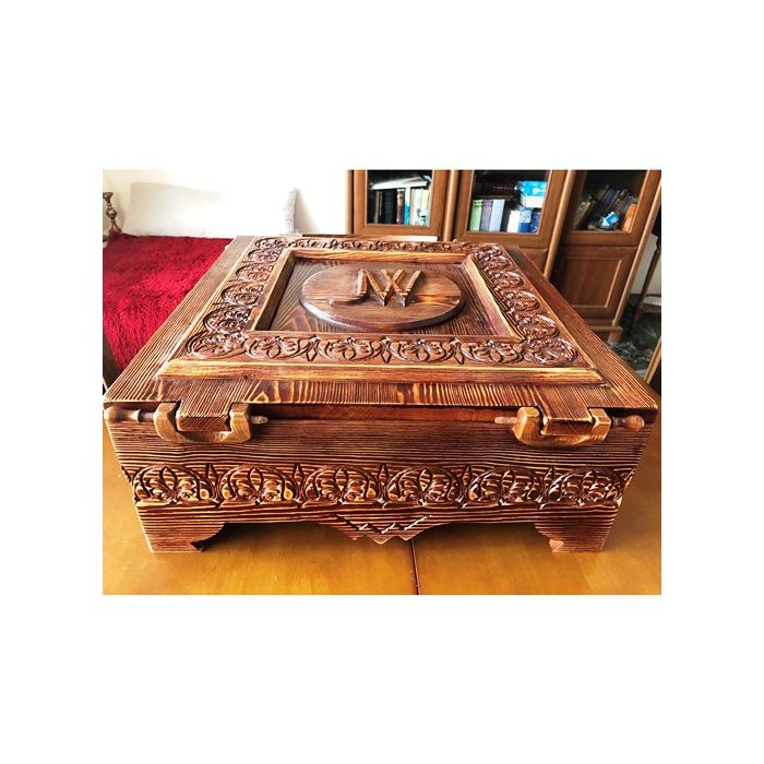 Луксозната дървена кутия е изработена като продължение на стила на българската резбарска школа. На капака са изобразени инициалите на този, който получава подаръка, обградени със характерен фриз, в духа на българската възрожденска и християнска традиция.