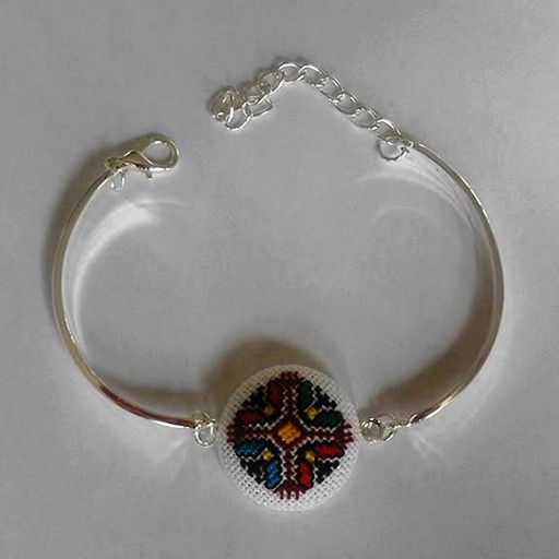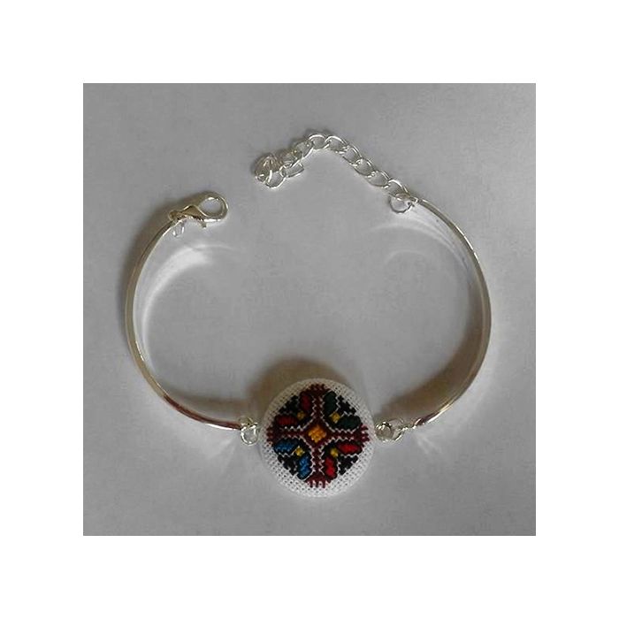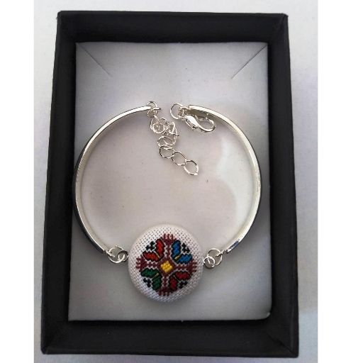 Нежна и елегантна метална гривна с българска бродерия, Самоковска елбетица