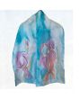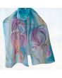 Ръчно рисуван шал от естествена коприна, Ириси на фон тюркоаз