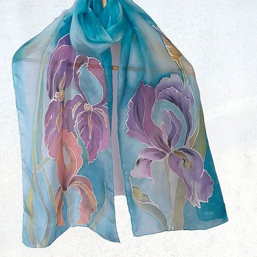 Ръчно рисуван шал, Ириси на фон тюркоаз