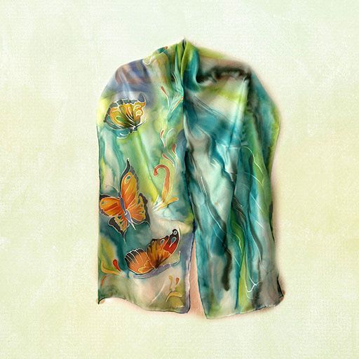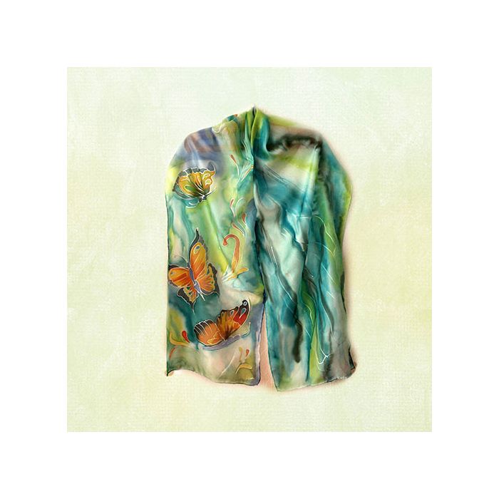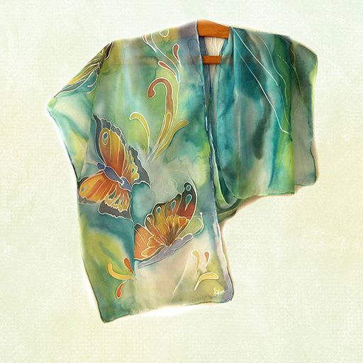 Шал от 100% естествена коприна, ръчно рисуван, Пеперуди