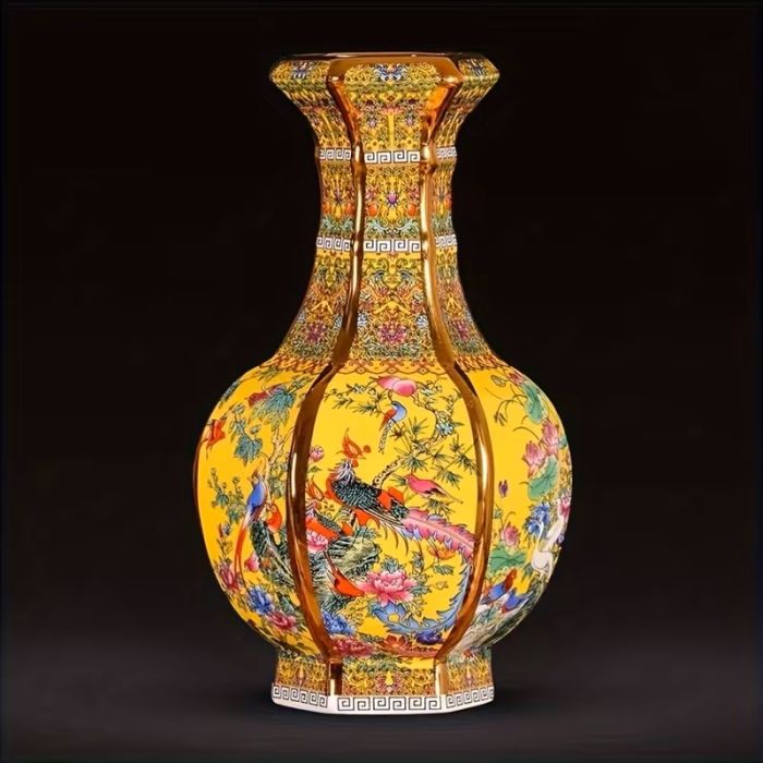 Шестстенна порцеланова ваза, ръчно изработена и рисувана реплика от епохата на император Циенлун
