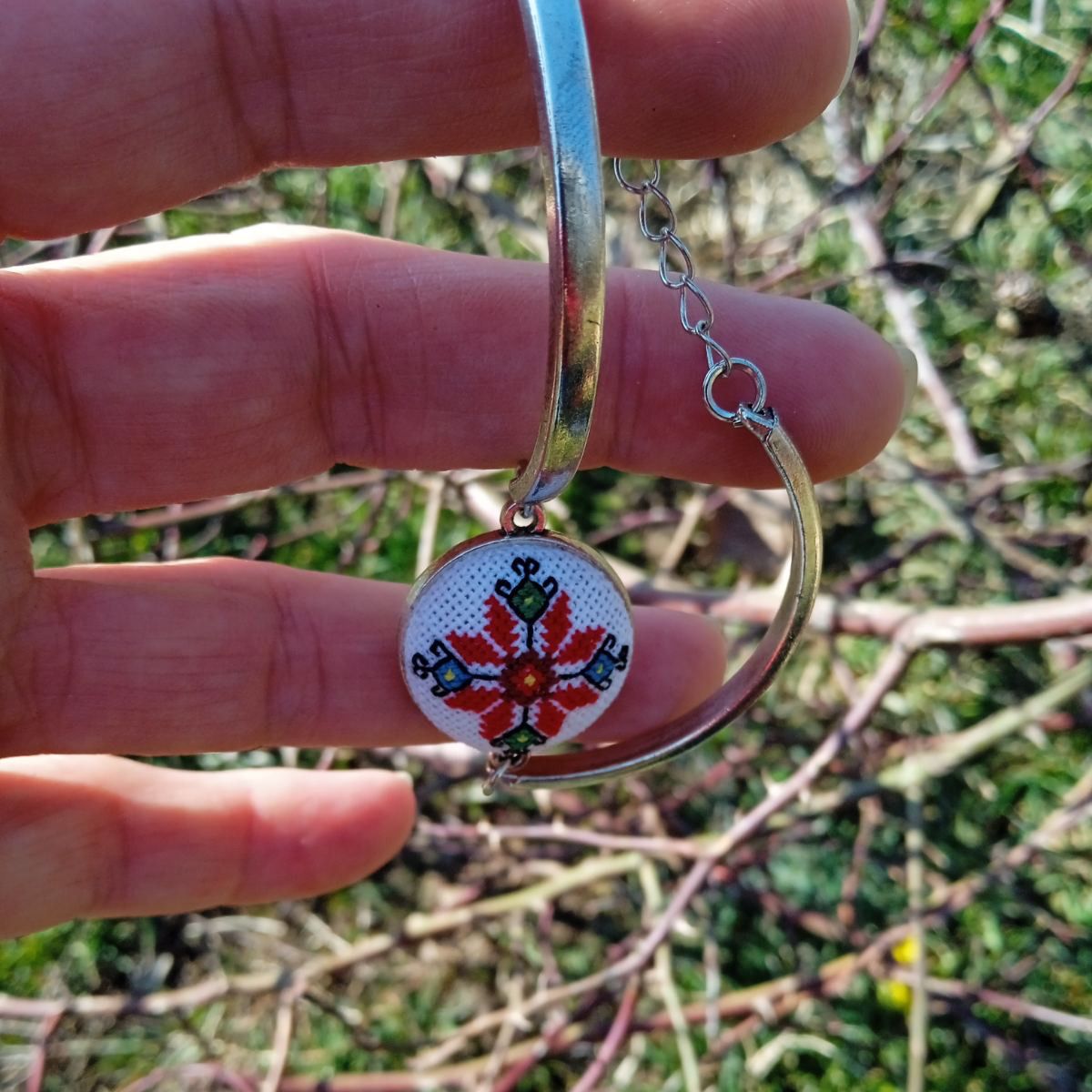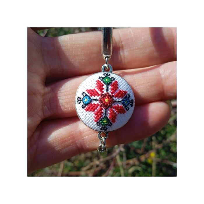 Нежна и елегантна метална гривна с българска бродерия, Софийска елбетица