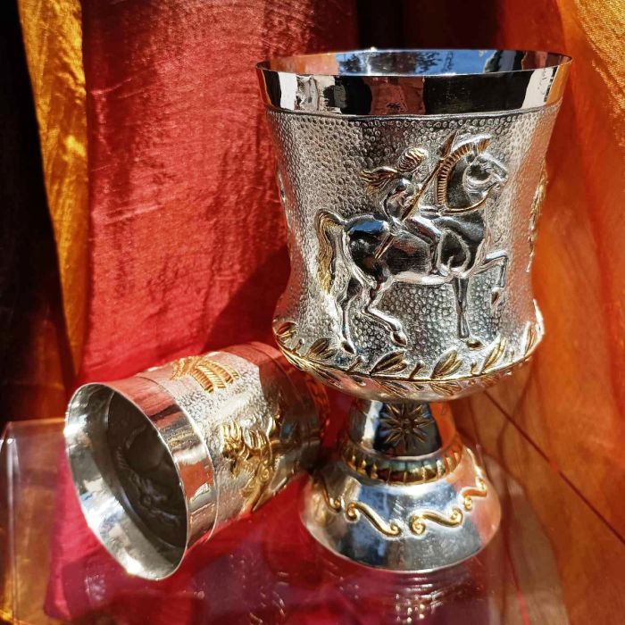 Авторски чаши, ръчно изработени от най-висока проба сребро - 999,9 и 24 карата злато - чаши на тракийските войни-победители