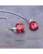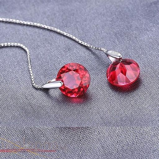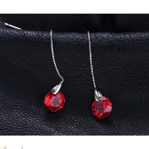 Информацията за достолепния рубин звучи една идея архаична. За да намерят съвременно приложение на рубина за младите хора и да го направят на достъпна цена, италианските дизайнери създават сребърните обеци с рубини във формата на капки. Обеците са подходящи за млади, съвременни, дръзки, делови дами. Изработени са от сребро, проба 925, което е дообработено с родий за допълнителен блясък. Рубините (лабораторно създадени) са 5.5 ct. Дължина на обеците: 6.1 см. Размер на камъка: 0.8 см. Общо тегло: 2 гр.