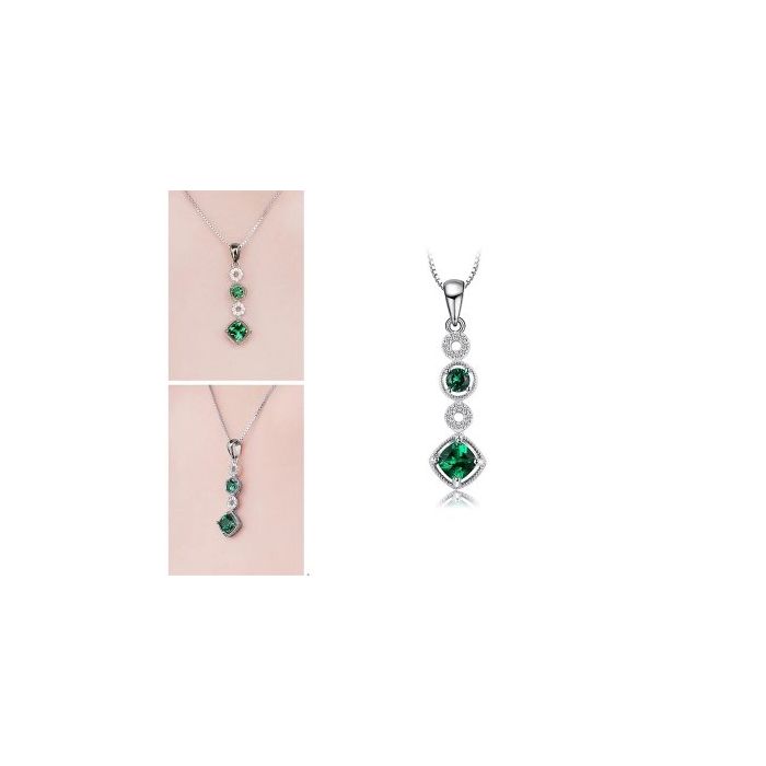 Елегантният сребърен обков подчертава яркото излъчване на зеления цвят на изумруда /Смарагд/. Колието е изработено от сребро проба 925 и синтетичен изумруд Изумрудът е скъпоценен камък, който се среща много рядко и се оценява като скъпоценен камък от най-висока класа. Камък на мъдростта, хладнокръвието и надеждата. Изумрудите привличат богатството, усмиряват сладострастието и донасят мир на собственика. Изумрудът преодолява измамата и авантюризма, не позволява извършването на незаконни действия и провокира човек да остане верен на втората си половина.