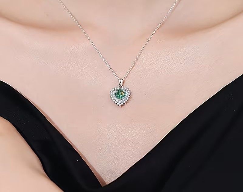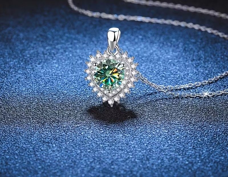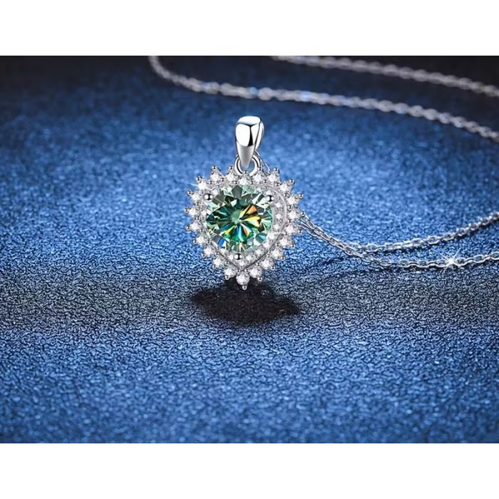 Сребърно колие със синьо-зелен мойсанит, Сърцето на океана