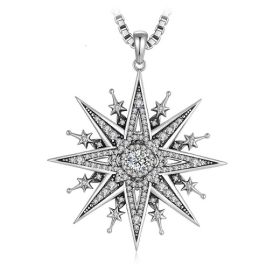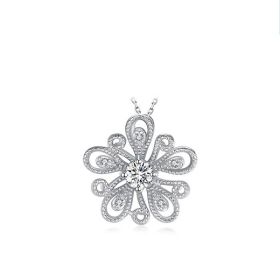 Сребърно колие с лотос, обграден от нежни бели цирконии.