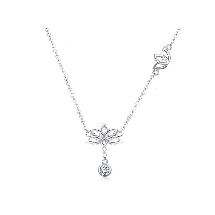 Колие от масивно сребро 925 и висулка със свещеното цвете лотос. Бижуто е обработено с родий за по-дълготраен блясък и е с добавени бели цирконии. Лотосът е цветето на чистотата и целомъдрието, плодородието и производителната сила.То олицетворява богатството, просперитет, успех и положителната енергия.