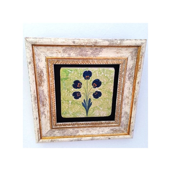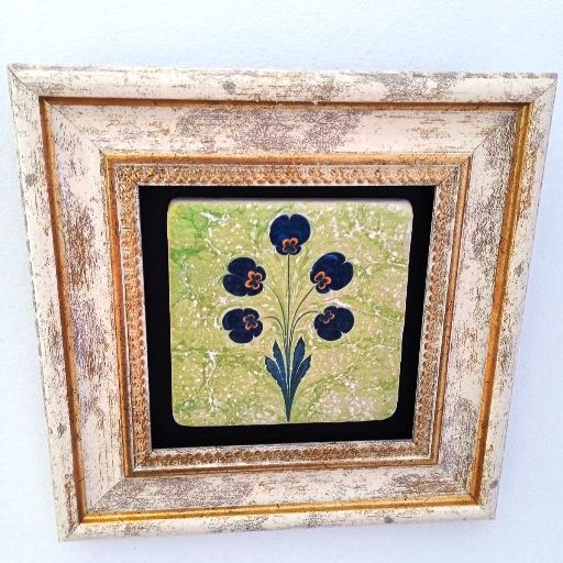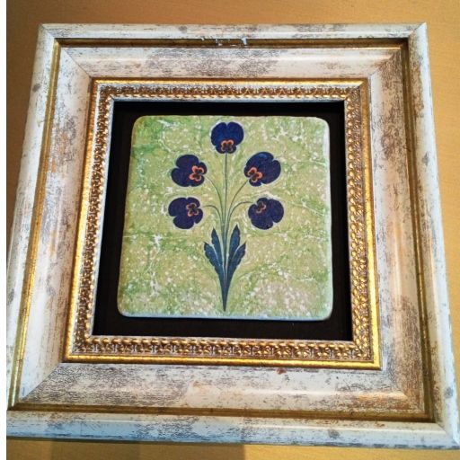 Теменужки, ръчно рисувана картина с рамка върху керамична плочка.