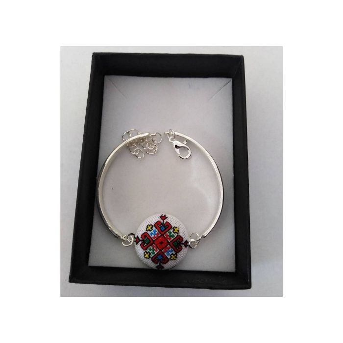 Нежна и елегантна метална гривна с българска бродерия, тракийска шевица