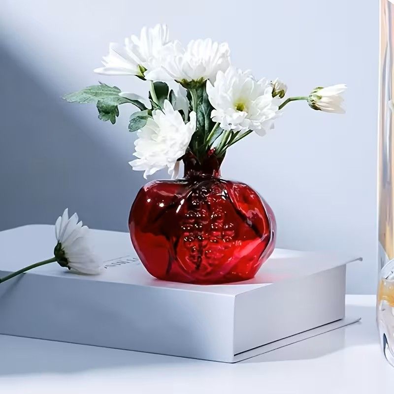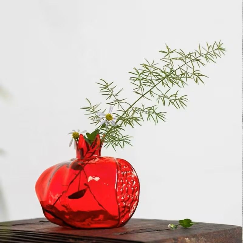 Ваза, ръчно изработена от цветно стъкло, тип Мурано във формата на нар - плодът на изобилието