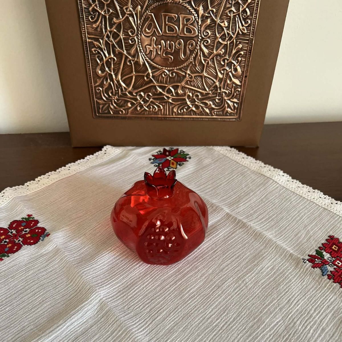 Ваза от червено стъкло - малък нар