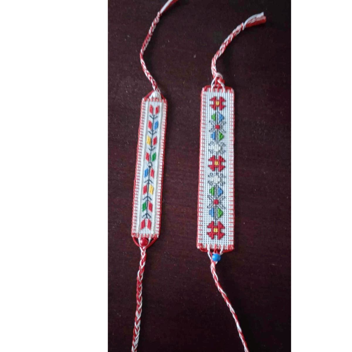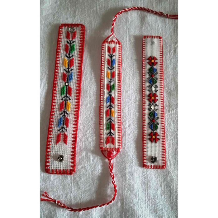 Ръчно бродираната гривна с мотиви от българската везба, напомня за шевиците на баби и прабаби, за везбата, с която българските моми и невести са бродирали и наричали здраве, успех, любов и изобилие за дома си и любимите си хора! Гривните могат да се носят и като мартеница, и като амулет против уроки!