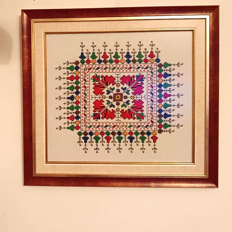 Бродирана картина с мотив от възглавница "Шевица от Кюстендилско"