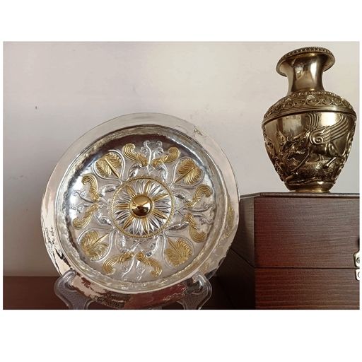 Репликата на фиалата е изработена по метода на галванопластиката, посребрена и позлатена.