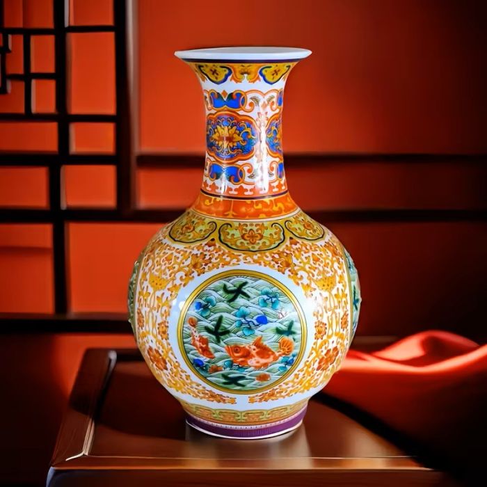 Златната рибка -ръчно рисувана ваза китайски порцелан